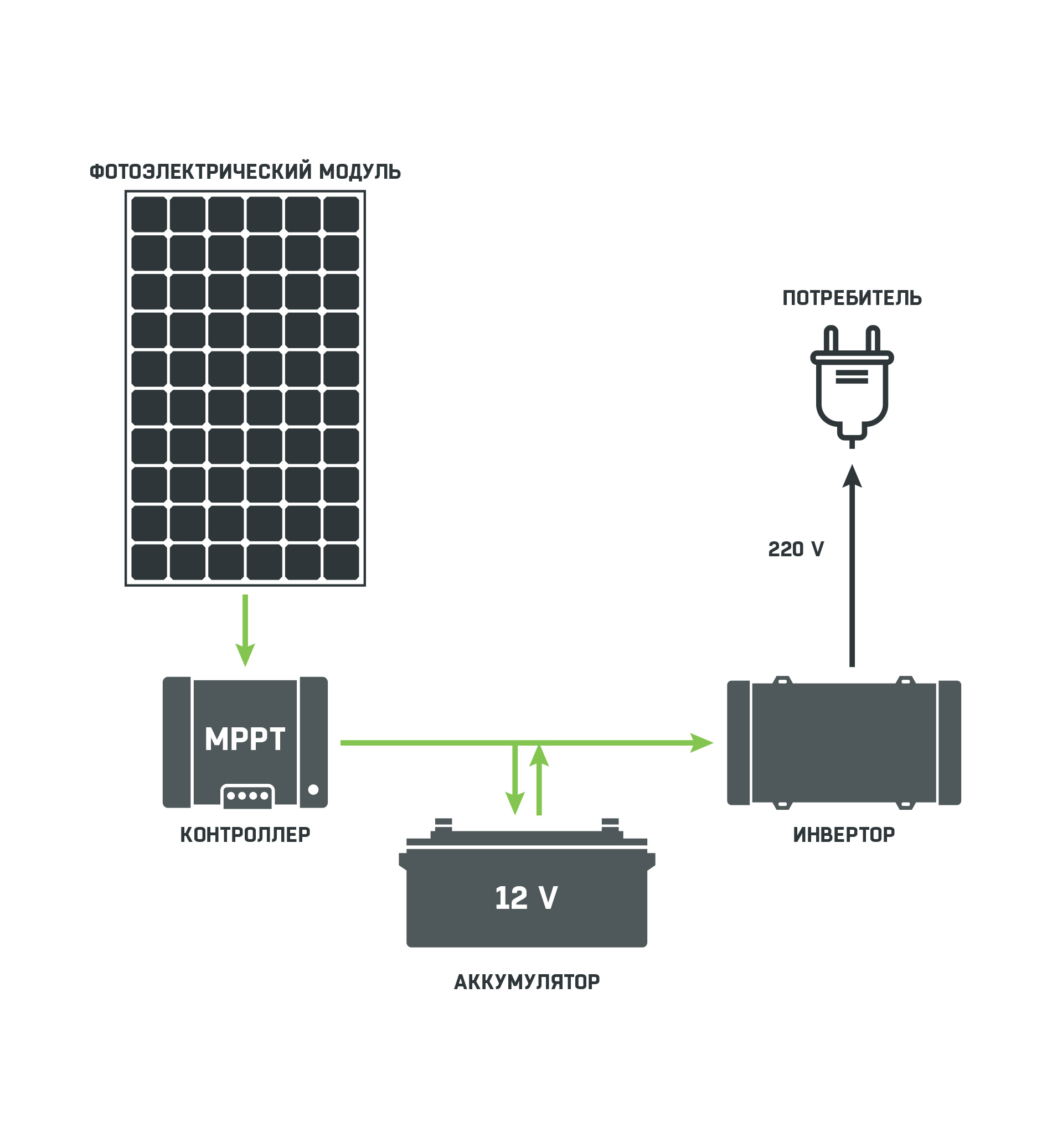 Автономная солнечная электростанция A8F1- включает в себя контроллер, инвертор, фотоэлектрические модули, аккумуляторные батареи и другое оборудование, которое используется для монтажа СЭС. Автономные станции хороши тем, что могут функционировать в различных режимах: